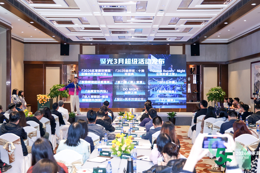 随着2026名家具展全国巡演系列造势活动持续落地,名家具展已未展先热。从“莞佛联动”佛山场招商发布的产业共振,到“惠莞深协同”的惠州场招商启航,再到百家媒体聚焦的媒体发布会现场,三地接力,共同勾勒出第55届名家具展的辐射广度与融合深度。